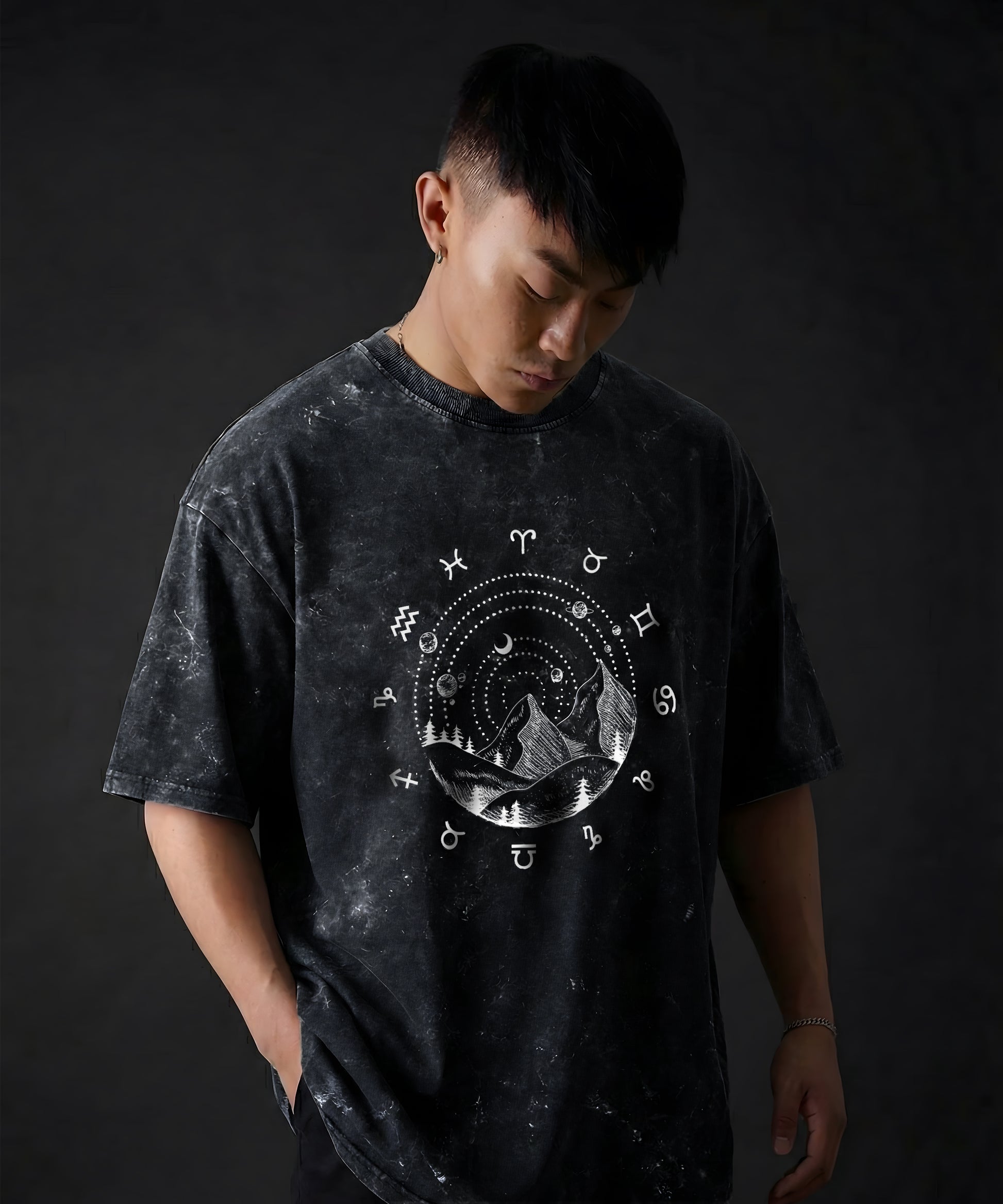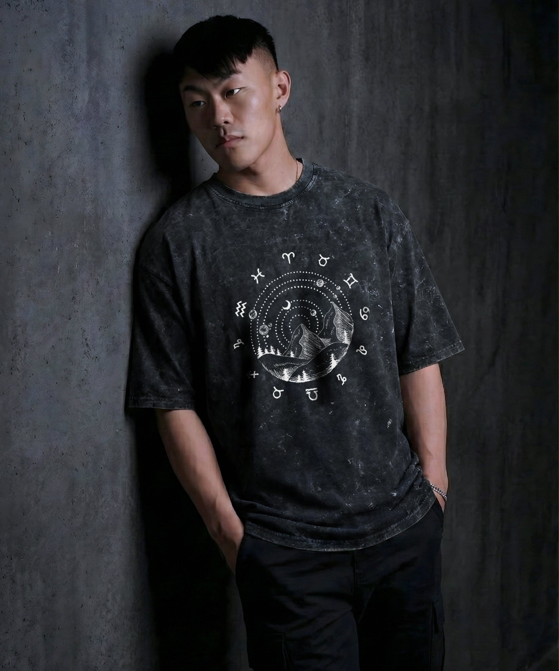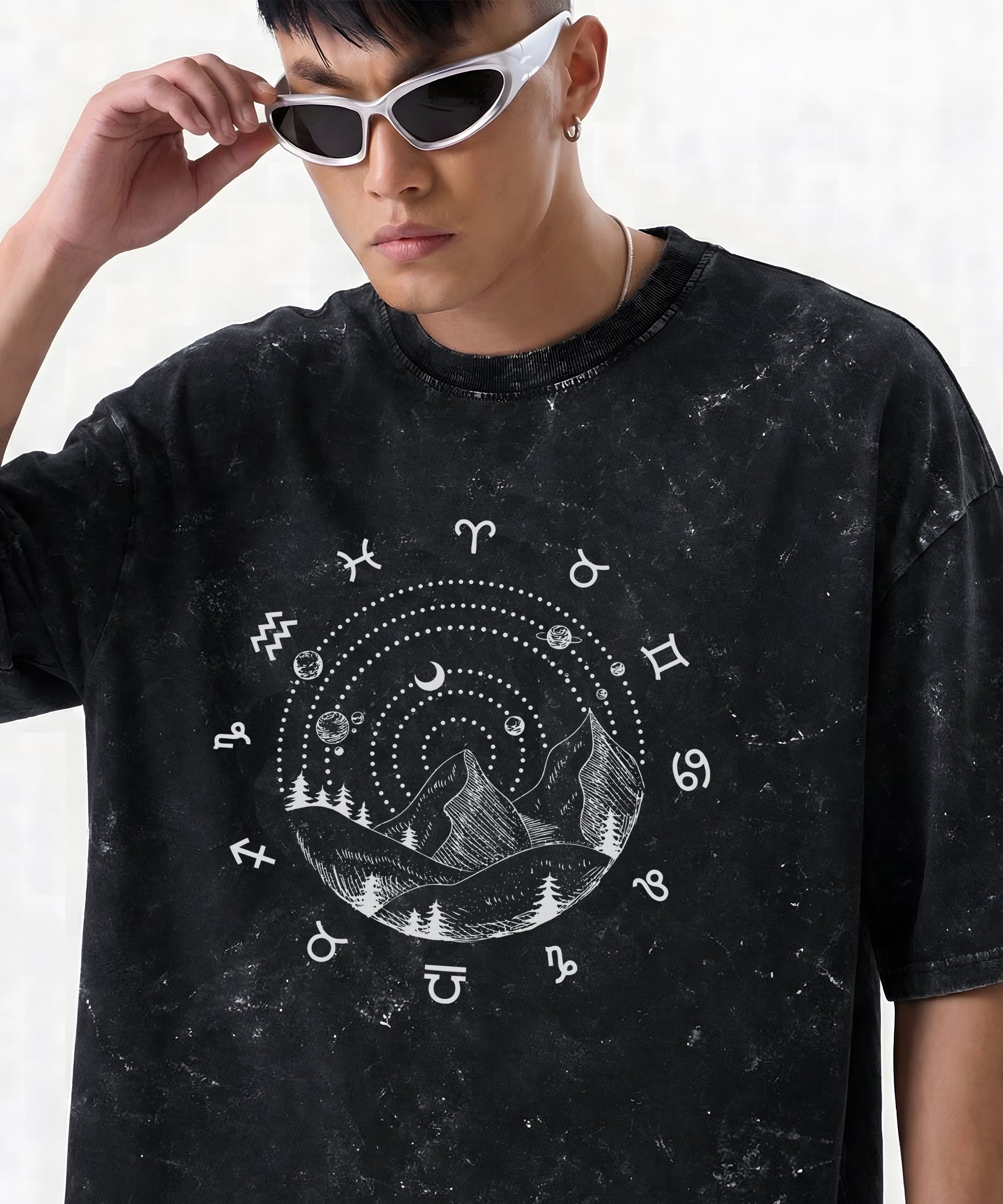 Acid-Wash Oversized Tee – Celestial Zodiac Edition
